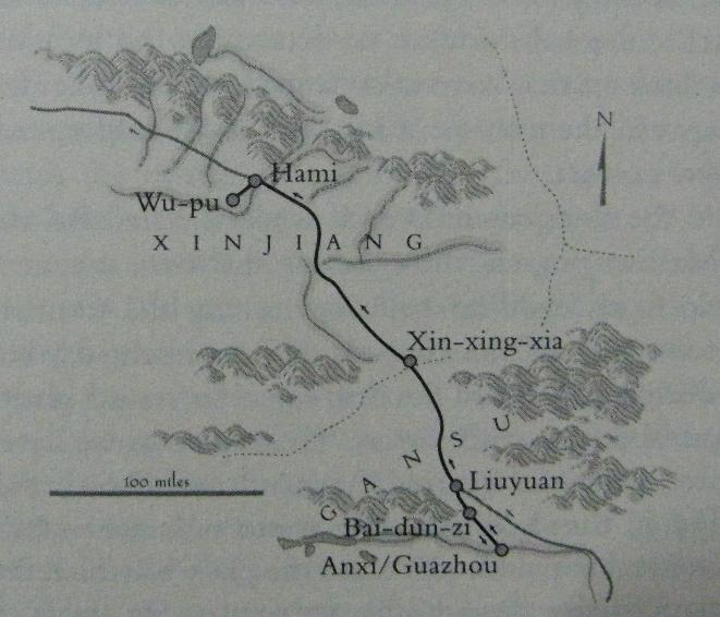 Map shows route taken by Xuanzang, starting from Xian, (ancient Ch'ang An). Click to enlarge.